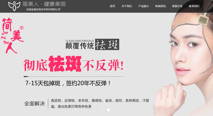 公司旗下简美人品牌产品是专业解决各种色斑、痘痘、红血丝、扁平疣、汗管瘤、过敏性皮肤领军品牌,从根本上彻底解决各种原因导致的皮肤问题,多年来为全国各地上万面部皮肤的患者重塑靓丽容颜、还原肌肤本色,简简单单做美丽女人,这就是简美人。
