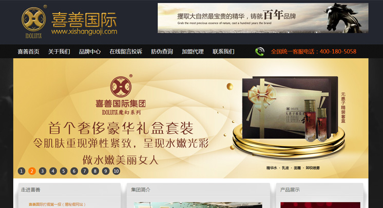 喜善国际贸易有限公司是一家专业以化妆品、美肤、美体产品为主营项目的企业,公司自创立以来一直专业致力于中高端化妆品的产品研发;始终坚持发扬"诚信、创新、沟通"为企业宗旨,以"技术、服务"为立业之本的团队精神,并形成一套完整的产品研发、包装、推广、一站式营销体系。